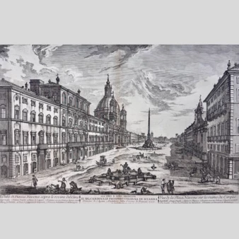 Гравюра «Площадь Навона в Риме», лист №19 из фолианта «Самые красивые здания современного Рима» («Les Plus Beaux Edifices de Rome Moderne»), Италия, Рим, 1763 год.