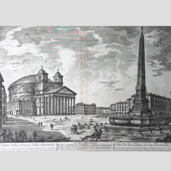 Гравюра «Площадь Ротонда в Риме», лист №20 из фолианта «Самые красивые здания современного Рима» («Les Plus Beaux Edifices de Rome Moderne»), Италия, Рим, 1763 год.