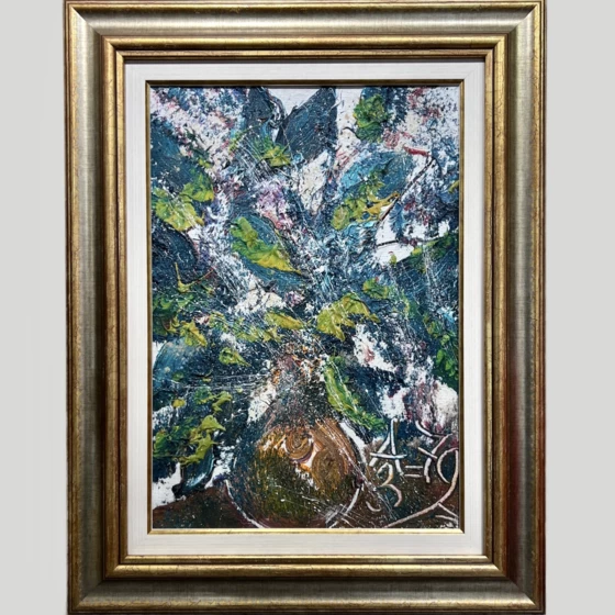 Натюрморт «Цветы» - редкое и уникальное по сложности высококачественное произведение, он написан непосредственно с натуры темпераментно, декоративно, с блестящим применением уникальных, инновационных приемов письма, заключающихся в сложности живописной фактуры.