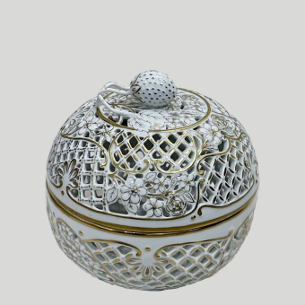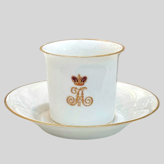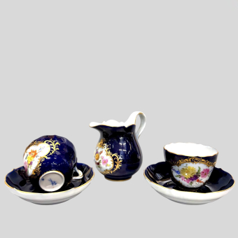 Фарфор, надглазурная роспись, позолота, цировка.