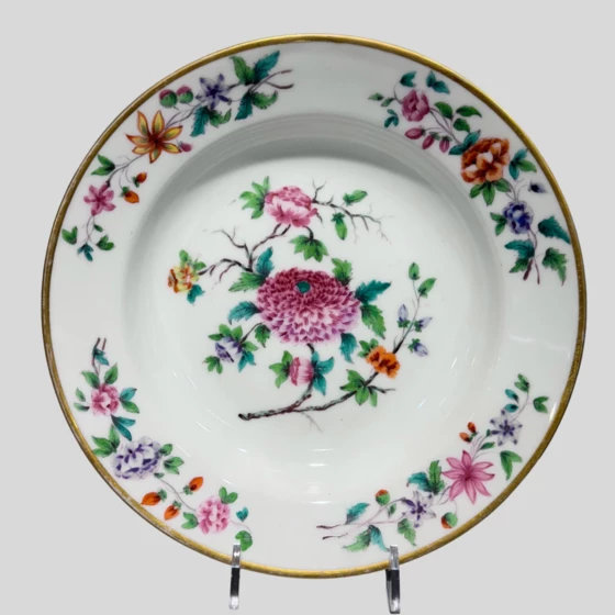 Глубокая тарелка с цветочно-растительным декором в стиле шинуазри, Россия, Санкт-Петербург, Императорский фарфоровый завод, период правления Николая I (1825-1855-е годы).