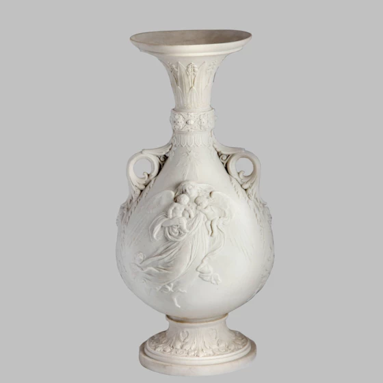 Ваза является характерным произведением Императорского фарфорового завода второй половины XIX века. Ее ручки, основание, горловина декорированы разнообразными рельефными стилизованными растительными орнаментами, исполненными с большим мастерством и техническим совершенством. Центральными композициями вазы с двух сторон являются сцены с парящими в воздухе крылатыми женскими фигурами в развевающихся одеждах, в одном случае в окружении трёх амуров, в другом - двумя уснувшими младенцами- амурами на руках.