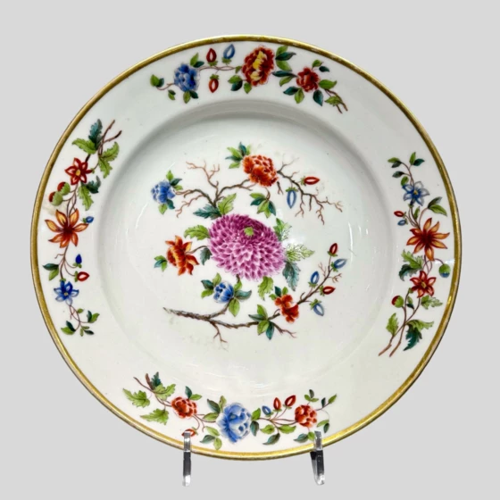 Глубокая тарелка с цветочно-растительным декором в стиле шинуазри, Россия, Санкт-Петербург, Императорский фарфоровый завод, период правления Николая I (1825-1855-е годы).