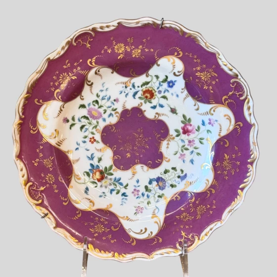 Тарелка с лиловым бортом, Россия, завод "А.Г. Попова", середина XIX века.