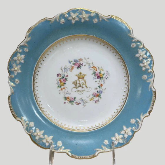 Тарелка с великокняжеской короной и вензелем ВА. в цветочном декоре, Россия, Императорский фарфоровый завод, период правления Николая I (1825-1855-е годы).