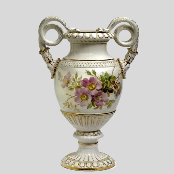 Ваза с двухсторонней росписью с цветами шиповника, Германия, Мейсенская Государственная фарфоровая мануфактура ("Meissener Porzellan"), XX век, Лейтериц Э.А.