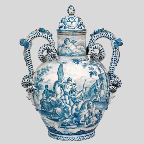 Ваза декоративная с жанровой росписью, Италия, Савона, 1722 год, Джованни Агостино Ратти.