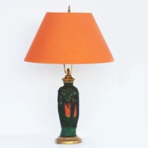 Лампа настольная с изображением "Ивы в лучах заходящего солнца", Франция, Лотарингия, Нанси, фирма "Даум" ("Daum"), 1900-1910-е годы.