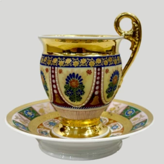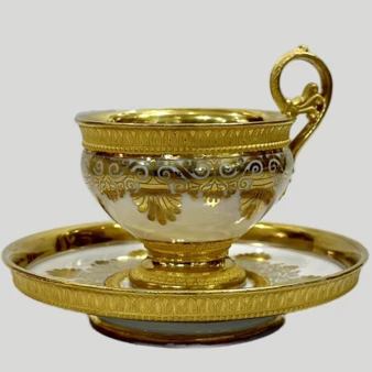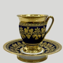 Роскошная чайная пара в стиле ампир с золотым растительным орнаментом, Франция, начало XIX века.