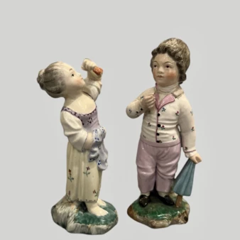 Парные скульптуры "Дети", Германия, фарфоровый завод "Дамм" ("Die Steingutfabrik zu Damm"), середина XIX века.