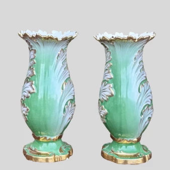 Вазы парные, зеленые, Германия, Берлин, Берлинская Королевская мануфактура ("Die Königliche Porzellan-Manufaktur Berlin"), XIX век.