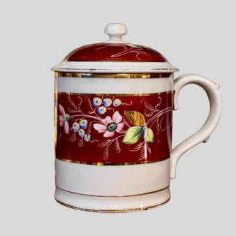 Красная кружка с крышкой, Россия, фабрика "М.С. Кузнецова" (товарищество), конец XVIII - начало XIX веков.