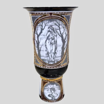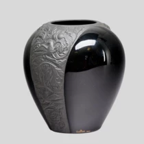 Чёрная ваза с растительным декором и птицами, Германия, фирма "Розенталь" ("Rosenthal"), 1980-е годы.