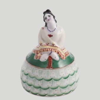 Пудренница «Купчиха», СССР, Ломоносовский Фарфоровый Завод, конец 1920-х - начало 1930-х годов.