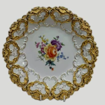 Тарелка с цветочной росписью в центре и рельефным бортом, с роскошным матовым и полированным золочением, Германия, Мейсенская Государственная фарфоровая мануфактура ("Meissener Porzellan"), XX век.