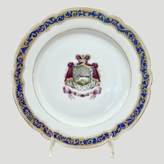 Тарелка с гербом и девизом «Совесть закон божий», Франция, Париж, фирма "Boyer Rue de la Paix", середина XIX века.