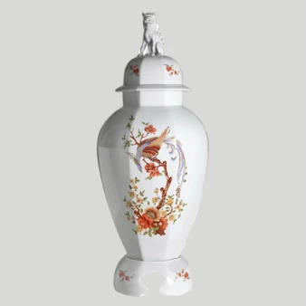 Фарфор, полихромная надглазурная роспись, лепной скульптурный декор, роспись золотом.