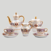 Фарфор, роспись золотом, печать с ручной дорисовкой, позолота.