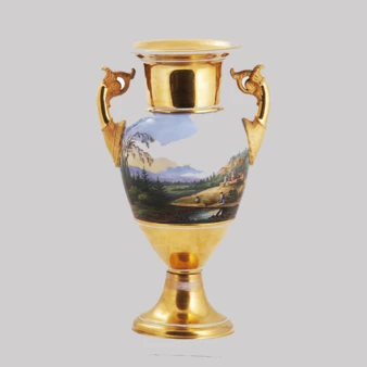 Декоративная ваза с панорамным пейзажем, Германия, Берлинская Королевская мануфактура ("Die Königliche Porzellan-Manufaktur Berlin"), 1840-е годы, XIX век.