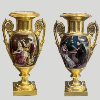 Вазы парные с галантными сюжетами, Франция, первая половина XIX века.