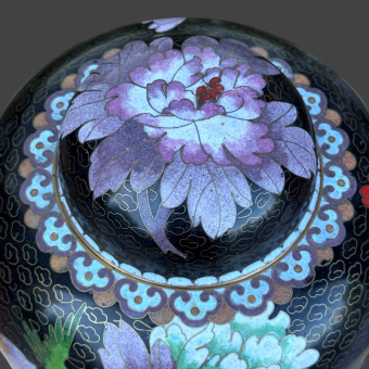 Ваза с крышкой с сиреневым пионом в технике клуазоне, Китай, XX век.