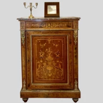 Секретер выполнен из красного дерева, центральная часть украшена тончайшим маркетри с цветочным мотивом.