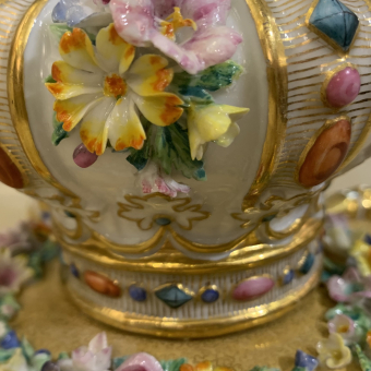 Зачастую убранство из лепных цветов играло главенствующую роль в декоре. Мастера Императорского фарфорового завода виртуозно исполняли подобный декор.