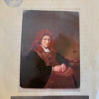 Пласт подписан автором с указанием года "1838". Именно в этом году художник был произведен в подмастерья, и рассматриваемый пласт был его конкурсной работой.